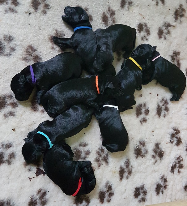 Jetzt sind wir 10 Wochen alt , India ist bereits in ihre neue Familie gezogen , sie bleibt in Süßen bei Familie Bandleon , am Freitag geht Idefix , der jetzt Enno heißt , er wohnt dann in Schwäbisch Gmünd bei Familie Hilbert , Isis die jetzt Jonka heißt wird ab ende Juli nach Leonberg ziehen zur Familie Roth-Lohas, Ilana fährt Anfang August zur Familie Schuster nach Österreich....